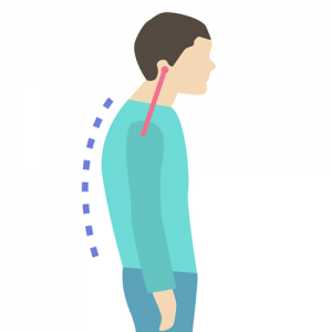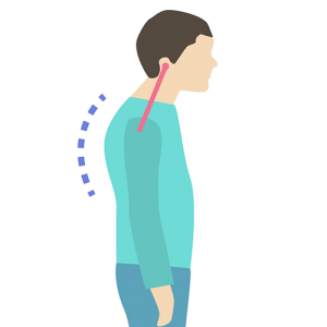 일자목이 더욱 진행되어 목이 앞으로 튀어나온 상태입니다. 심한 경우 목뼈가 뒤쪽으로 휘어진 역’C’자 형태 (후만곡)로 변형되기도 합니다.